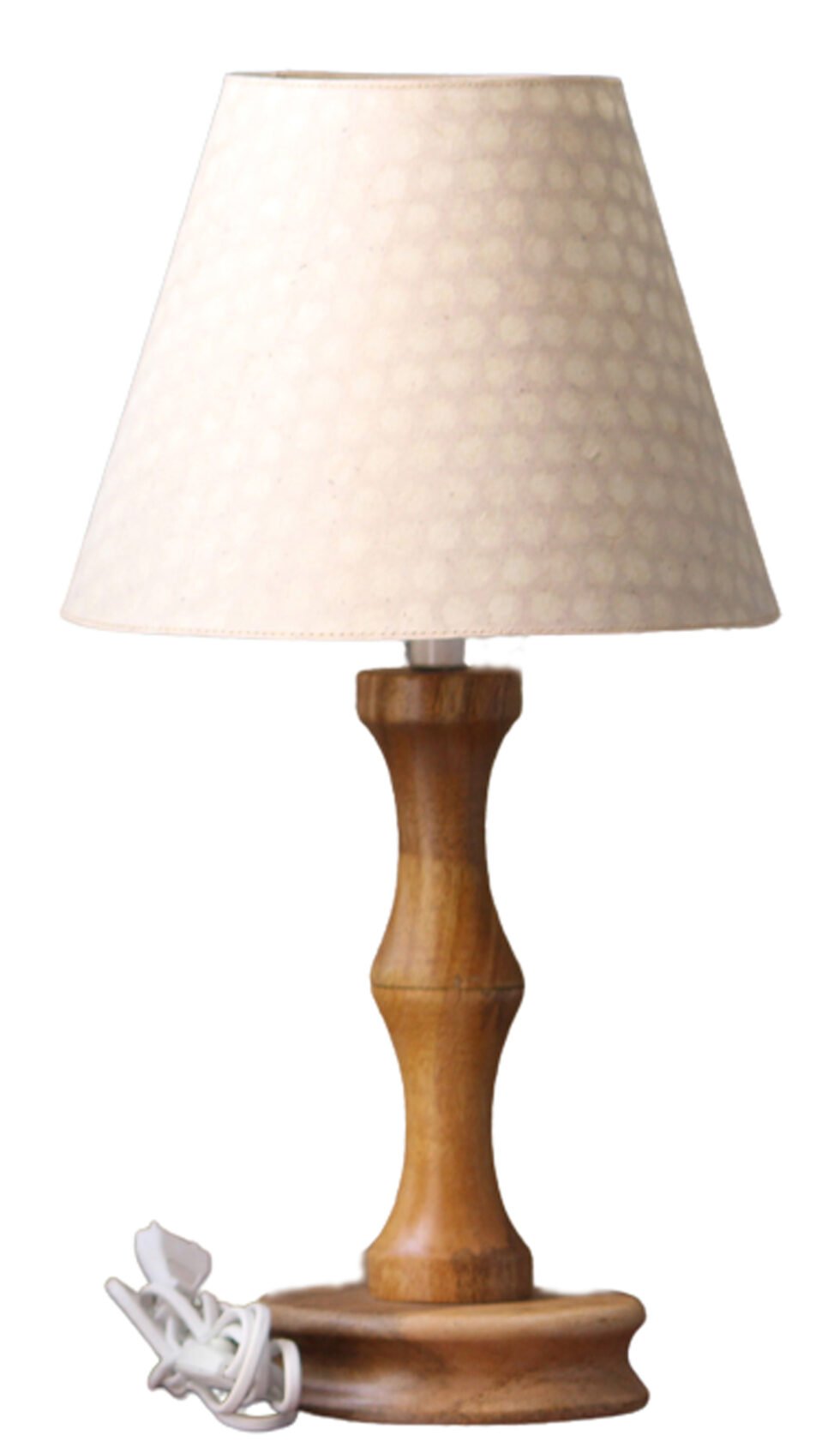 Lampshade from 100% Hemp fiber organic paper together with designed lace paper – purely recycled & handmade. A truly aesthetic décor catering to high class taste satisfying environmental concerns. Handcrafted by our premium artisans for the top quality international markets. A thin lining of acetate is given underneath the paper for the durability of the shade! The light shimmering out is so unique and carries a classy theme for any type of room / balcony / garden & bar. Light filtering out from the design pattern of the lace paper release spectacular formation of rays around. Shade supported by classy handcrafted wooden stand made of exclusive mango wood -further treated with better finish and carefully polished for the durability. A 2 meter long wire is given to its sturdy wooden base with on / off switch facility.