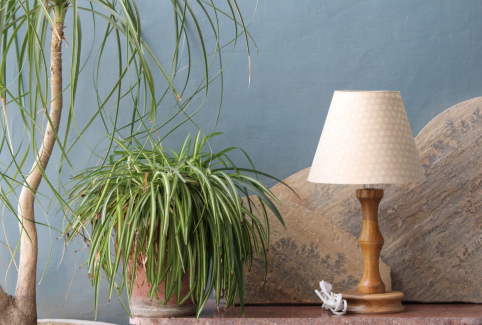 Handcrafted Hemp Fiber & Lace Lampshade – Made from 100% recycled hemp paper with lace accents, casting a unique shimmering light. Mounted on a polished mango wood stand with 2-meter wire and switch; an elegant, eco-friendly décor piece.
