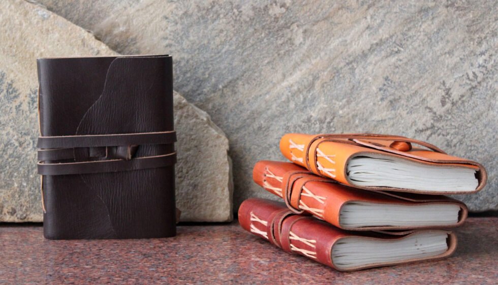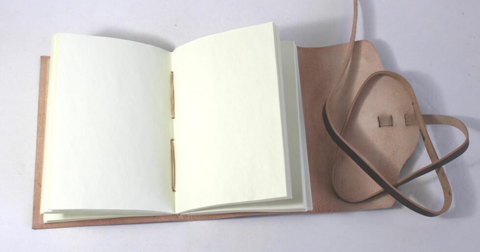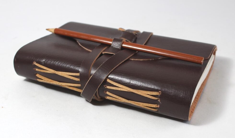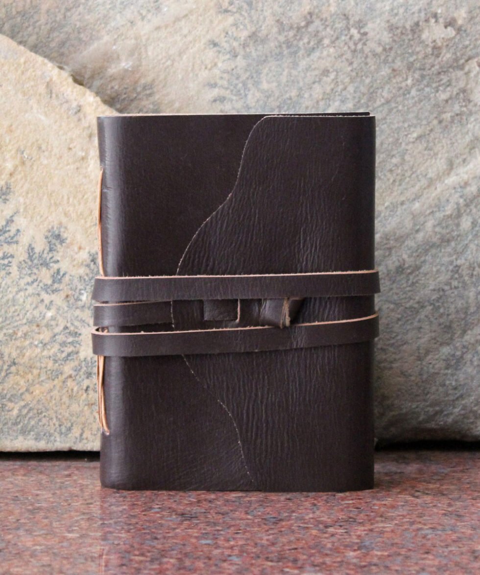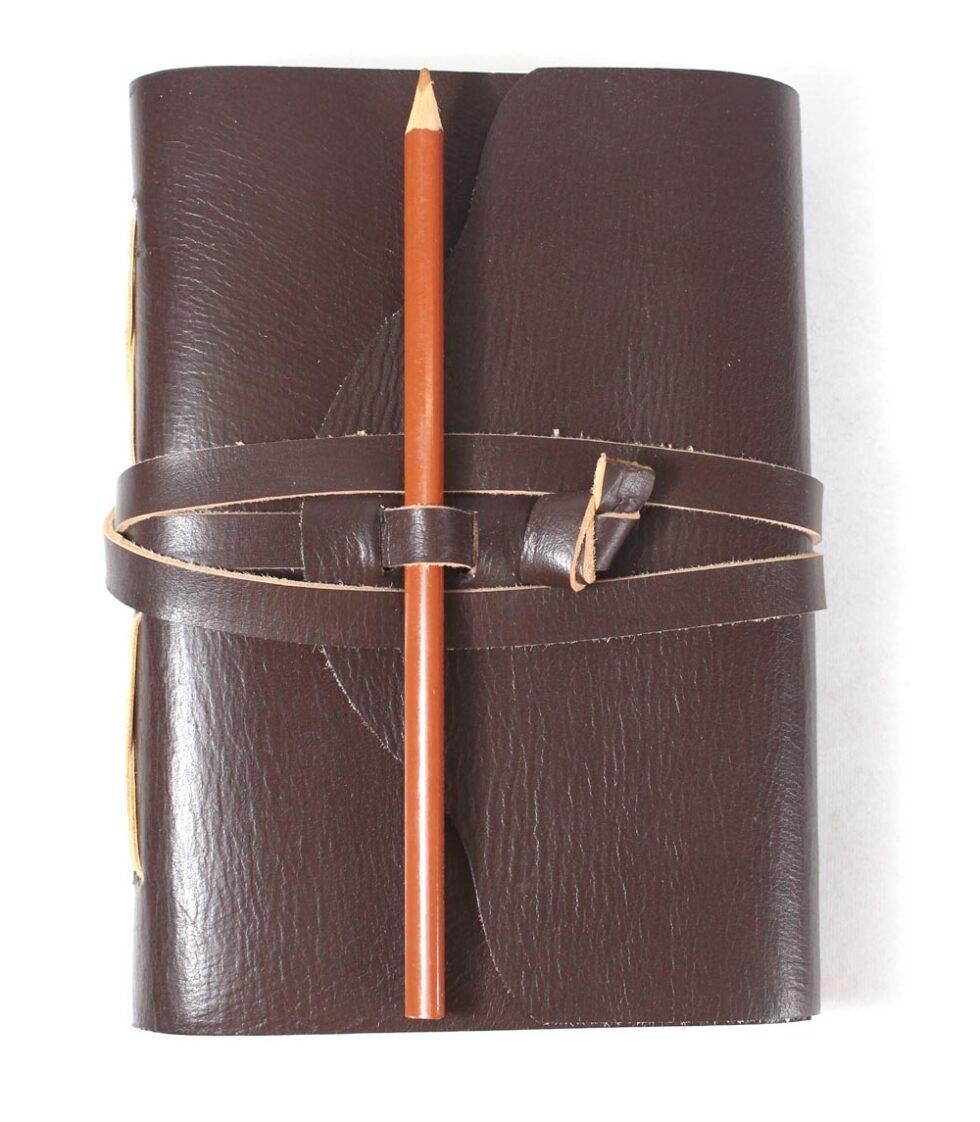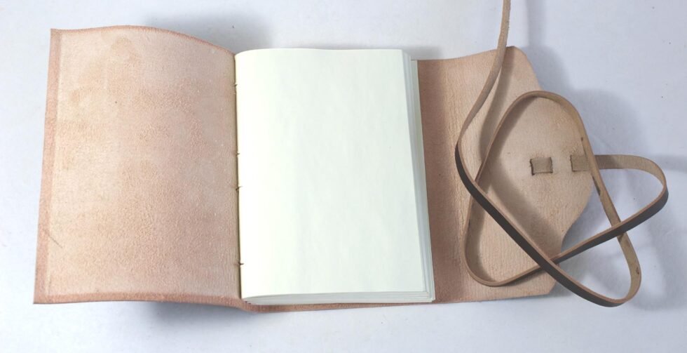 Ethnic style goat leather journal with 100 sheets / 200 pages of recycled cotton handmade paper. The gyspsy looking journal matches with the travel theme and serves a good purpose while writing on a vacation or trip…capturing all your moods and feelings inside it. The paper is smooth, absolutely wood free, acid free and never bleeds even with ink pen.