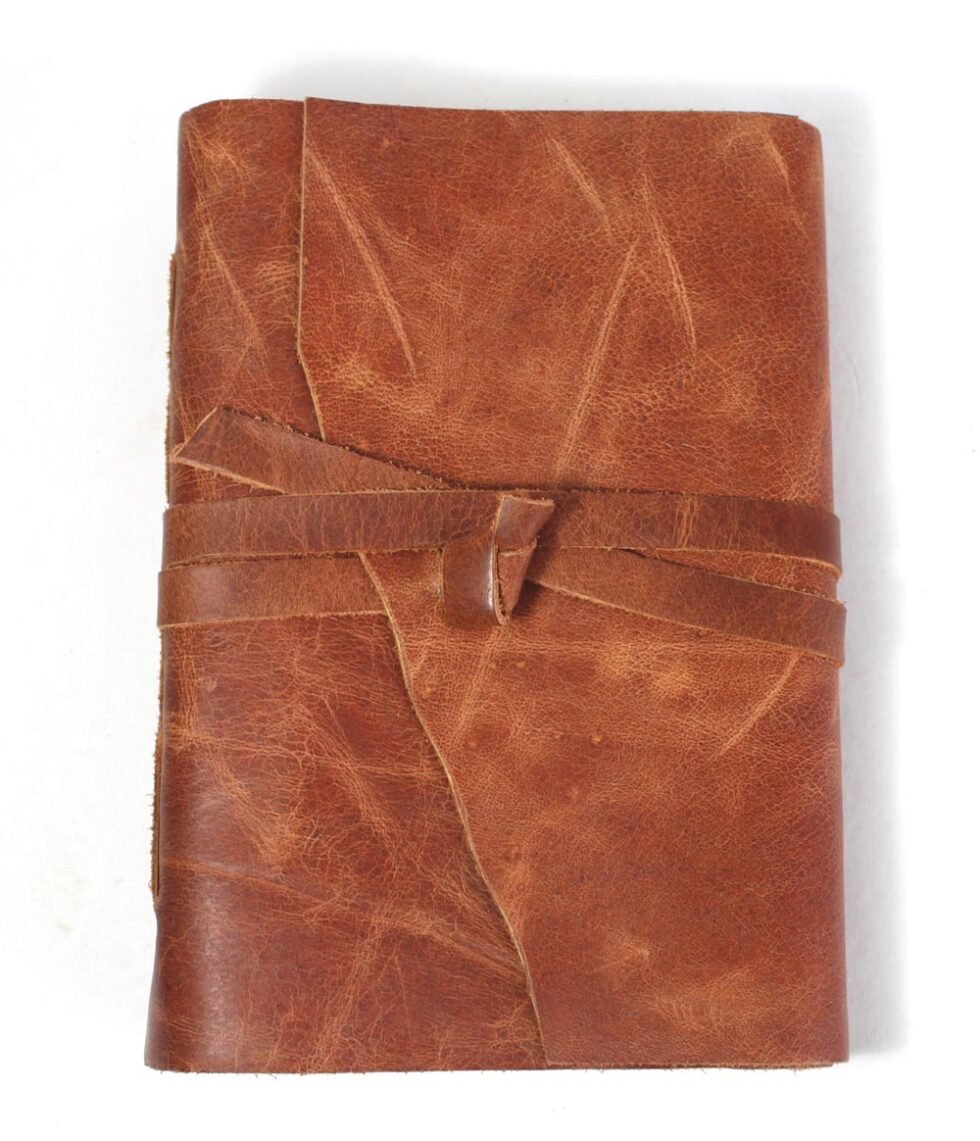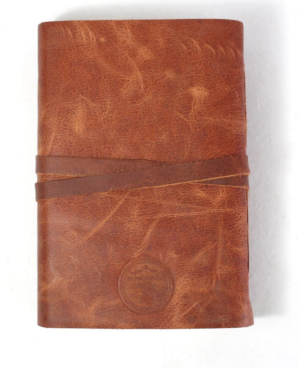 Oil crunch buffalo leather. Thick, rich, softer and antique looking leather gives a very special finish to this gypsy style travel journal. Leather string is used for hand binding, giving it a very special ethnic touch. Inside is the 100 sheets / 200 pages of recycled cotton handmade papers which is wood free, acid free and does not bleed with ink pen.