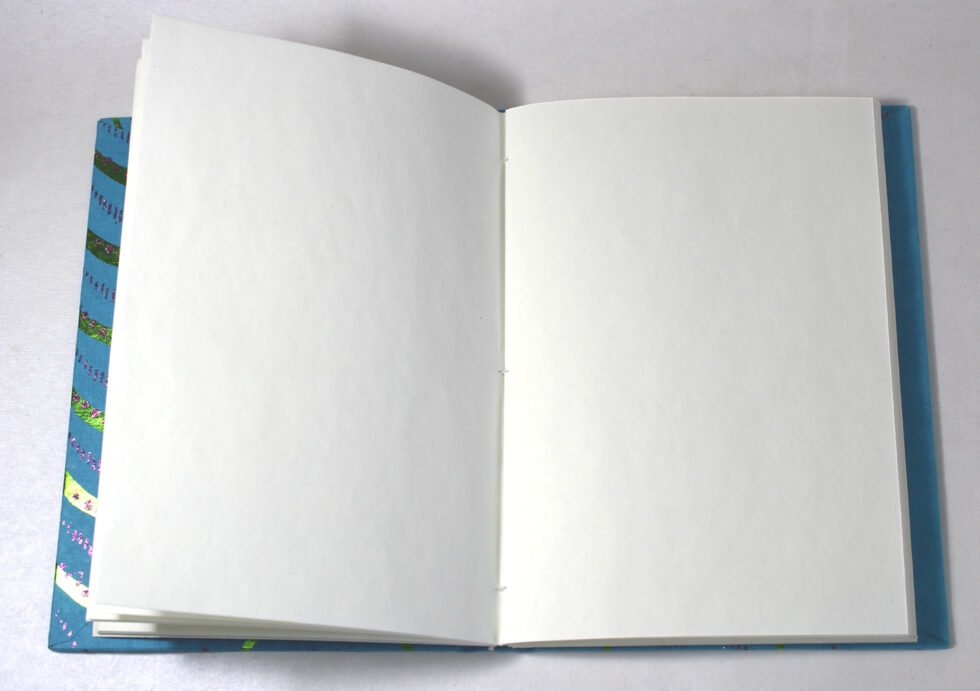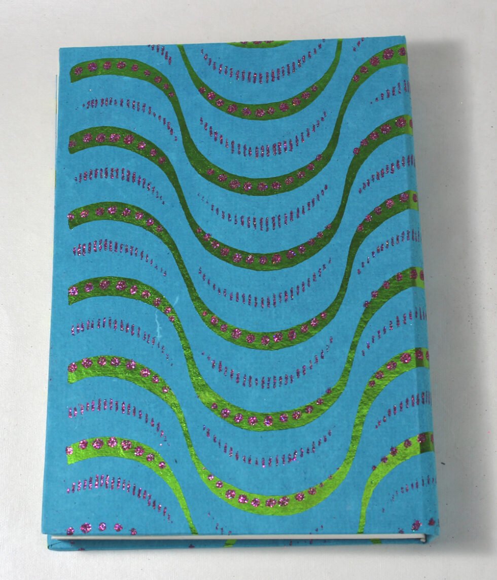Handmade hand crafted notebook by premium artisans. Exclusive job work done on recycled handmade paper as cover. Inside, 48 sheets / 96 pages of cream colour smooth paper. Lovely paper to write upon, totally wood free, acid free and never bleeds even when written upon by an ink / fountain pen. A beautiful hand crafted notebook with multiple prints / job works on cover paper to make it a beautiful present for many occasions.
