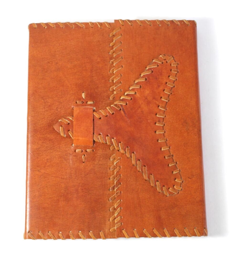 Ethnic style goat leather journal with 72 sheets / 144 pages of recycled cotton handmade paper. The gyspsy looking journal matches with the travel theme and serves a good purpose while writing on a vacation or trip…capturing all your moods and feelings inside it. The paper is smooth, absolutely wood free, acid free and never bleeds even with ink pen.