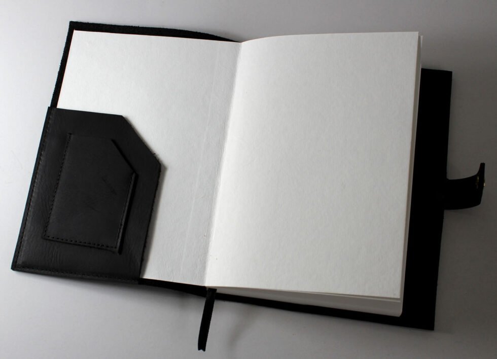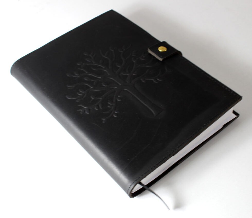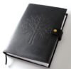Genuine supple Black natural buffalo leather journal with 100 sheets / 200 pages of mill made line print paper. A refillable journal once the inside papers are fully used up – as we do provide the same insert. Inside the front cover, a pocket for credit cards is give. Front cover is bearing embossed ‘tree of life’ designs with hot stamping. At the back cover inside, a pen loop is provided with a small leather flap closure to protect the sheets inside. This journal is a special gift and a different kind of exclusive corporate gift!