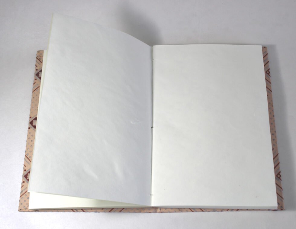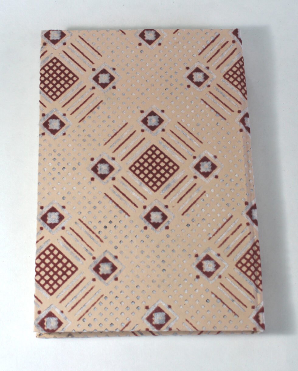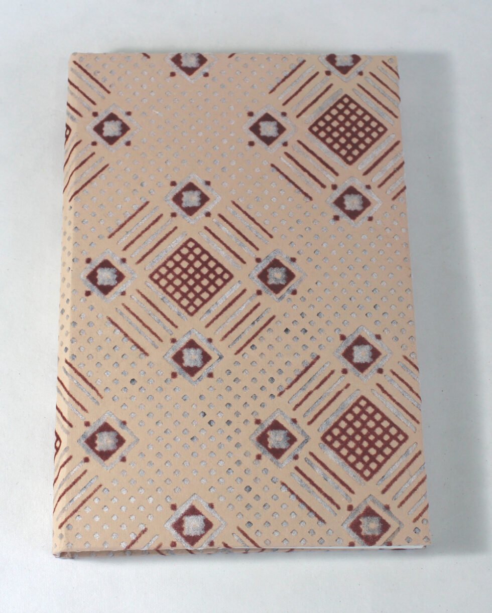 Handmade hand crafted notebook by premium artisans. Exclusive job work done on recycled handmade paper as cover. Inside, 48 sheets / 96 pages of cream colour smooth paper. Lovely paper to write upon, totally wood free, acid free and never bleeds even when written upon by an ink / fountain pen. A beautiful hand crafted notebook with multiple prints / job works on cover paper to make it a beautiful present for many occasions.