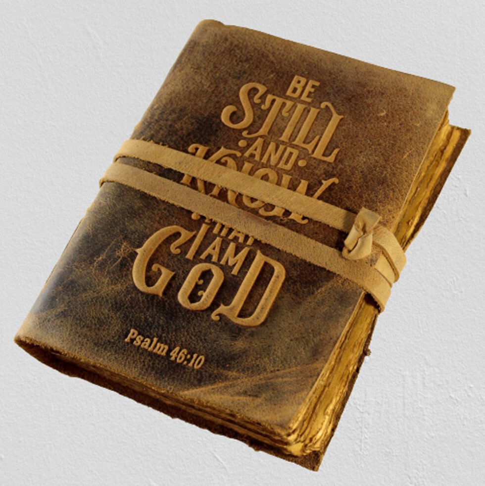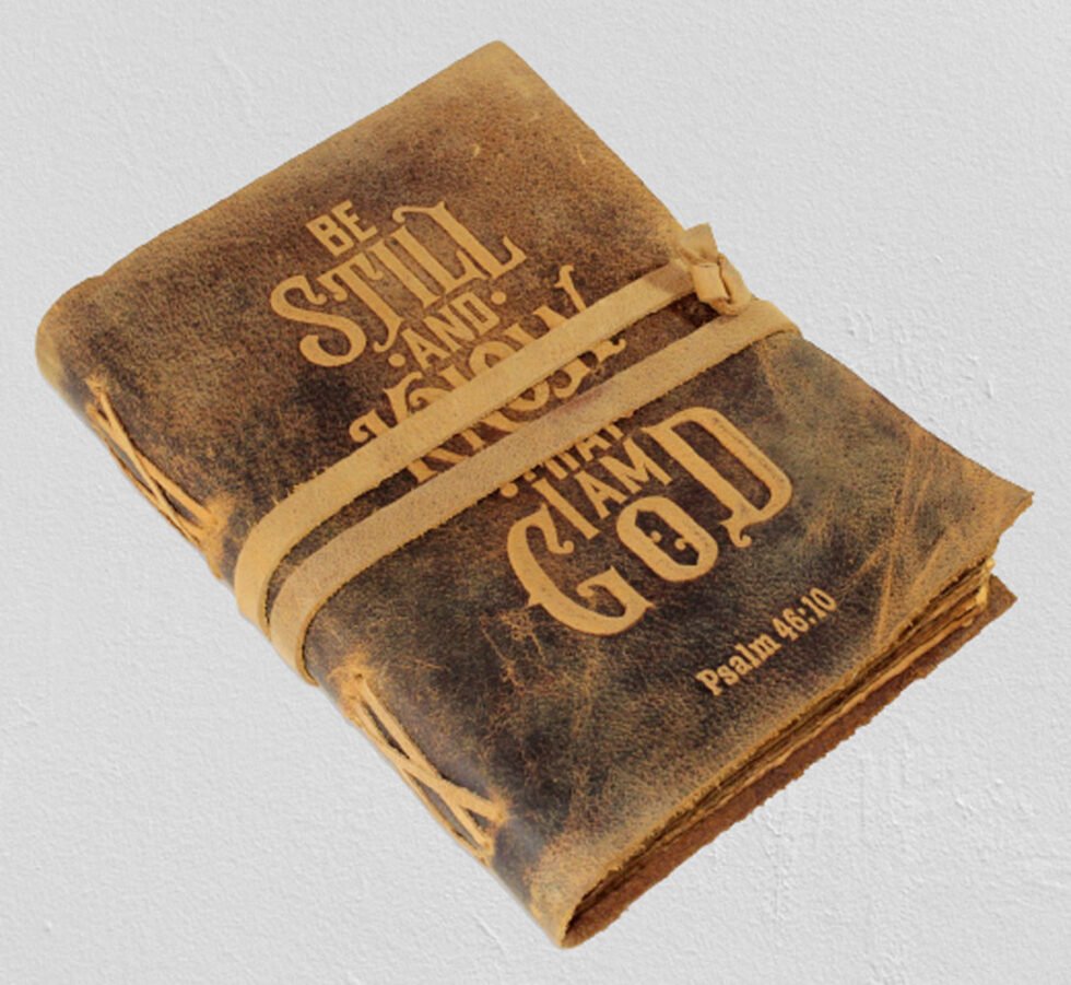 Buffalo leather journal with rustic spine stitching and embossed prayer design. Features 120 natural-edged blank sheets (240 pages) of recycled, acid-free, ink-friendly paper. A perfect gift for all ages.