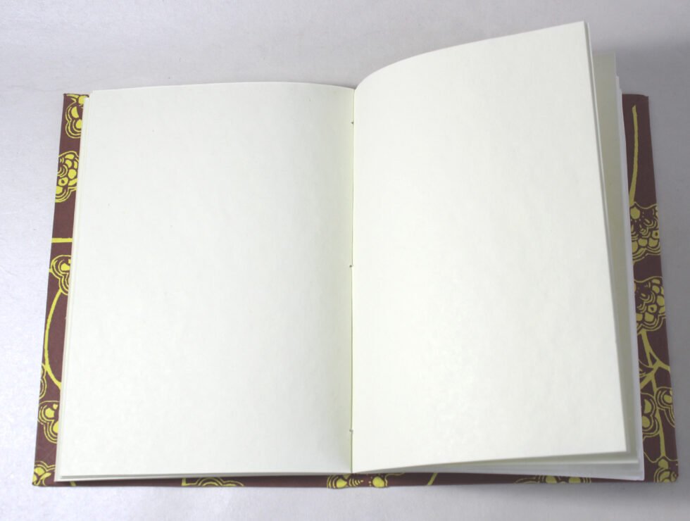 Handmade hand crafted notebook by premium artisans. Exclusive job work done on recycled handmade paper as cover. Inside, 48 sheets / 96 pages of cream colour smooth paper. Lovely paper to write upon, totally wood free, acid free and never bleeds even when written upon by an ink / fountain pen. A beautiful hand crafted notebook with multiple prints / job works on cover paper to make it a beautiful present for many occasions.