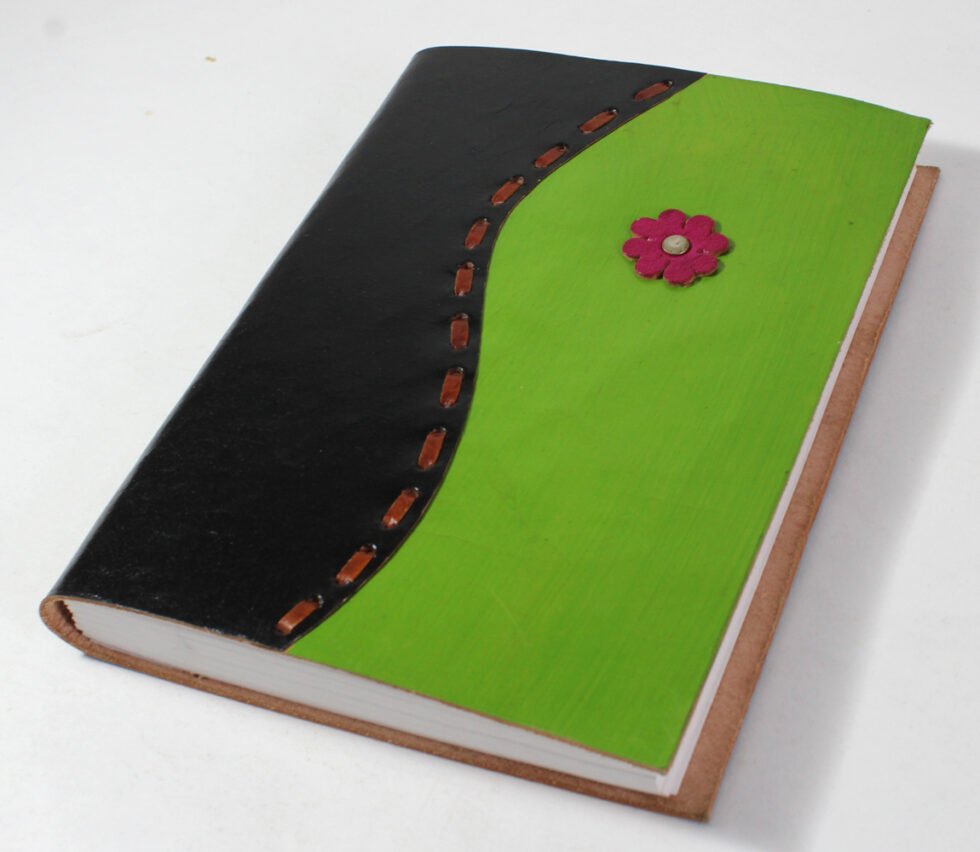 Ethnic style goat leather journal with 72 sheets / 144 pages of recycled cotton handmade paper. The gyspsy looking journal matches with the travel theme and serves a good purpose while writing on a vacation or trip…capturing all your moods and feelings inside it. The paper is smooth, absolutely wood free, acid free and never bleeds even with ink pen.