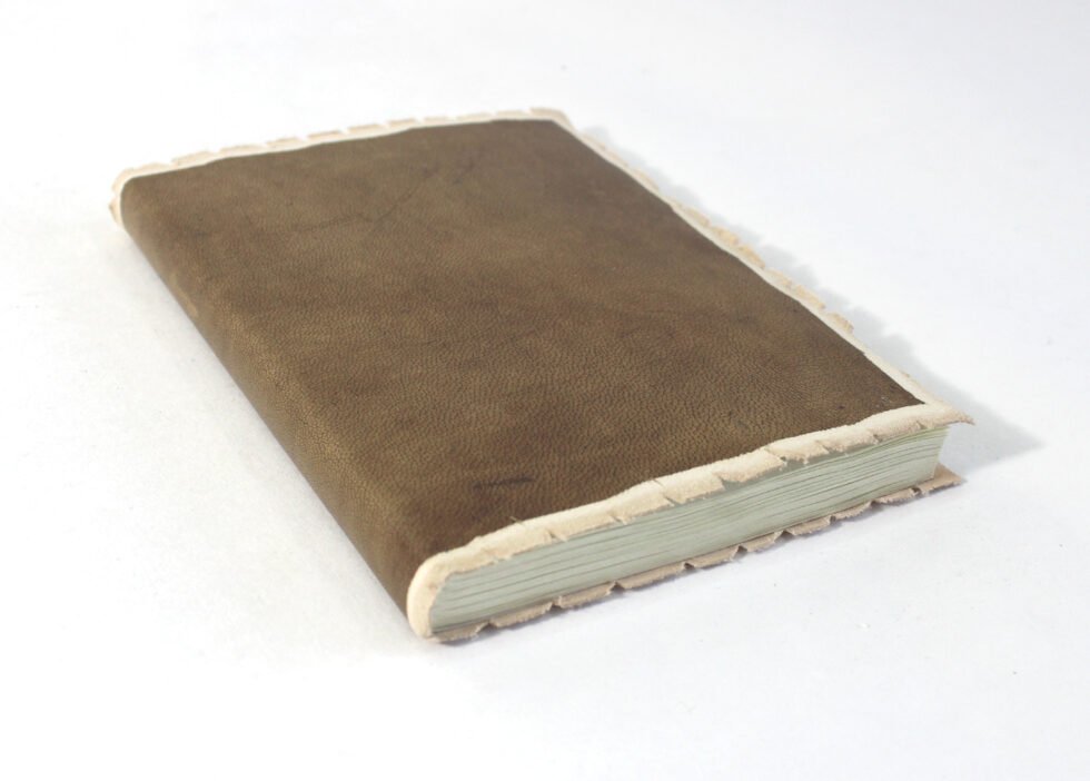 Ethnic style goat leather journal with 48 sheets / 96 pages of recycled cotton handmade paper. The gyspsy looking journal matches with the travel theme and serves a good purpose while writing on a vacation or trip…capturing all your moods and feelings inside it. The paper is smooth, absolutely wood free, acid free and never bleeds even with ink pen.