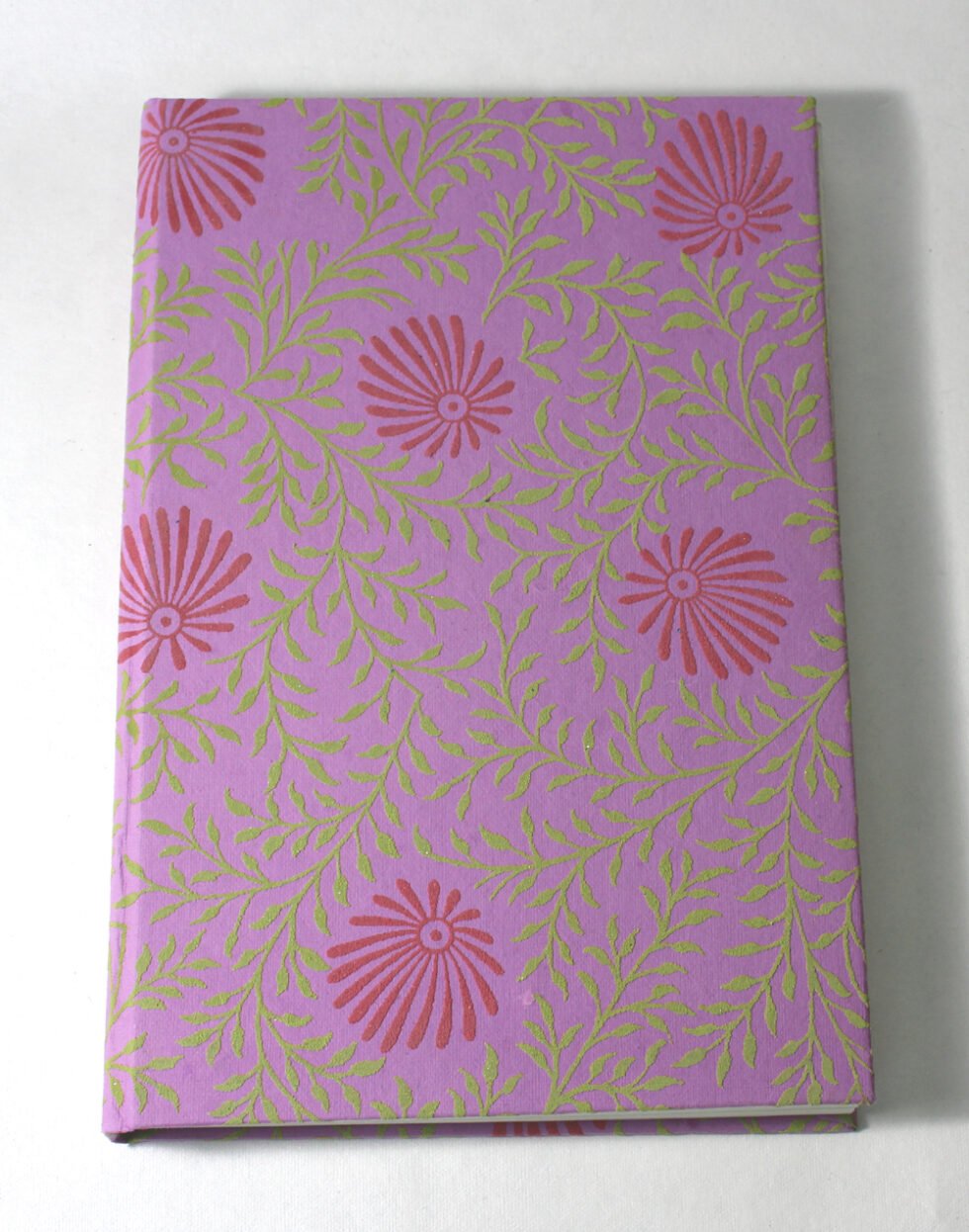 Handmade hand crafted notebook by premium artisans. Exclusive job work done on recycled handmade paper as cover. Inside, 48 sheets / 96 pages of cream colour smooth paper. Lovely paper to write upon, totally wood free, acid free and never bleeds even when written upon by an ink / fountain pen. A beautiful hand crafted notebook with multiple prints / job works on cover paper to make it a beautiful present for many occasions.